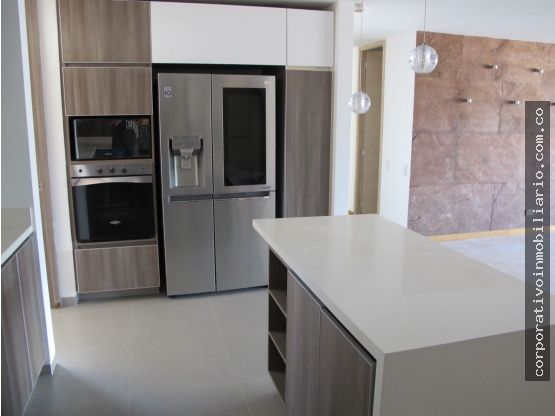 3 habitaciones todas con baño y vestier, baño principal con jacussi doble, cuarto del servicio con baño, baño social, amplia zona común, cocina integral abierta, cuarto de linos, doble parqueadero paralelo, cuarto util, hermosos acabados.